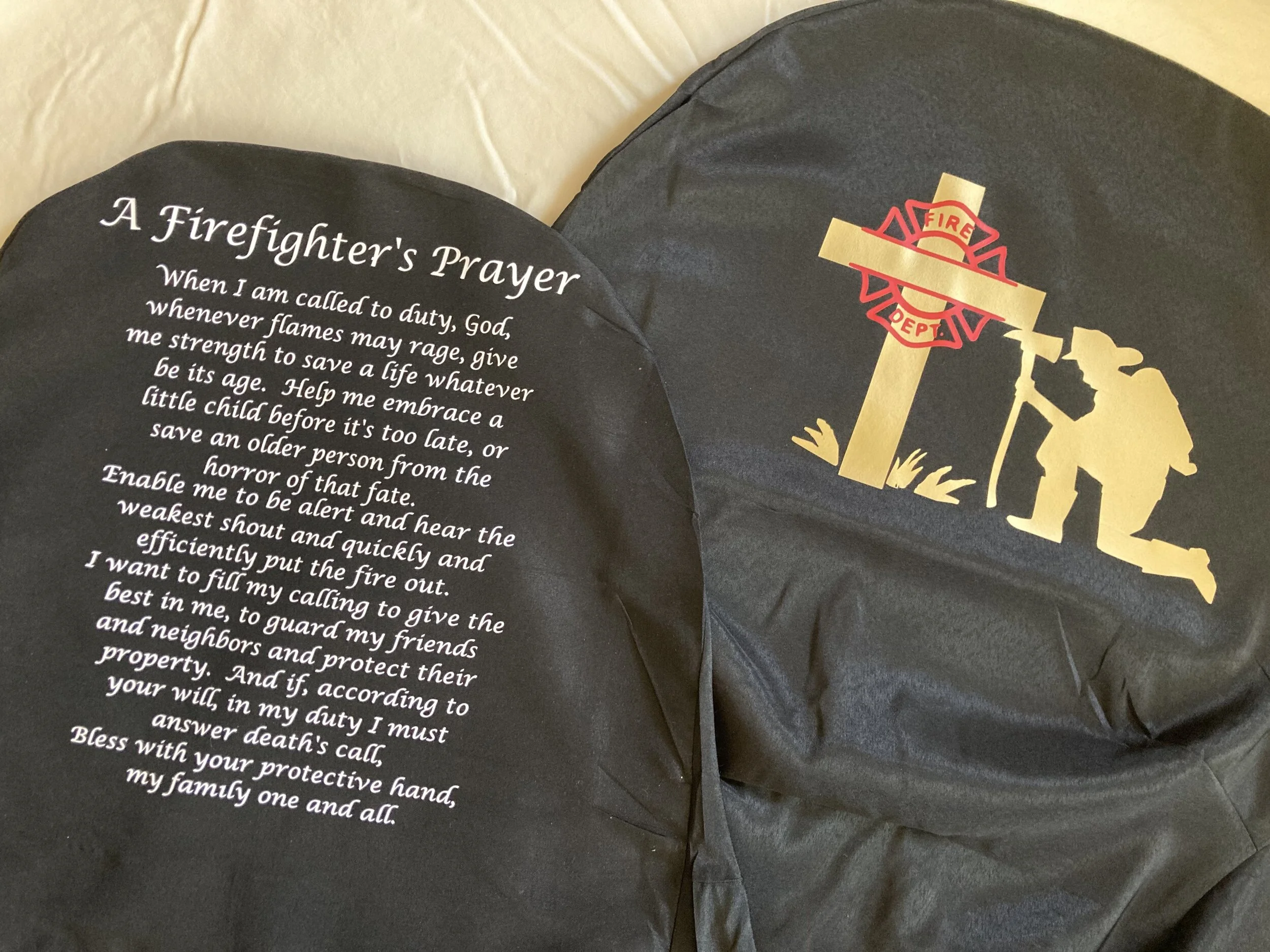 Promotion To Benefit National Fallen Firefighters Foundation Categories: All Something for Everyone T-Shirt Shop Baby / Toddler / Youth Shop Flannel Shop Garden Flag Shop Gift and Subscription Boxes Memorial Shop Sauce and Spice Shop Spirit Wear Stainless Steel Tumblers Designed Towel Shop Wedding Shop Race / BIR 4 - H FFA T-Shirt Honoring The First Responders Fundraiser Promotion To Benefit National Fallen Firefighters Foundation Samantha Cote Memorial Barrel Race #BuffaloStrong Shop Custom Orders All / Promotion To Benefit National Fallen Firefighters Foundation Quick View Fallen Firefighter Memorial Chair Covering Black covering for a folding chair $34.99