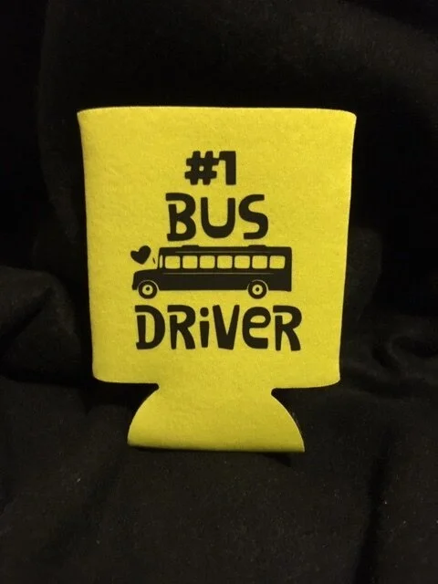 #1 Bus Driver yellow koozie with black writing.