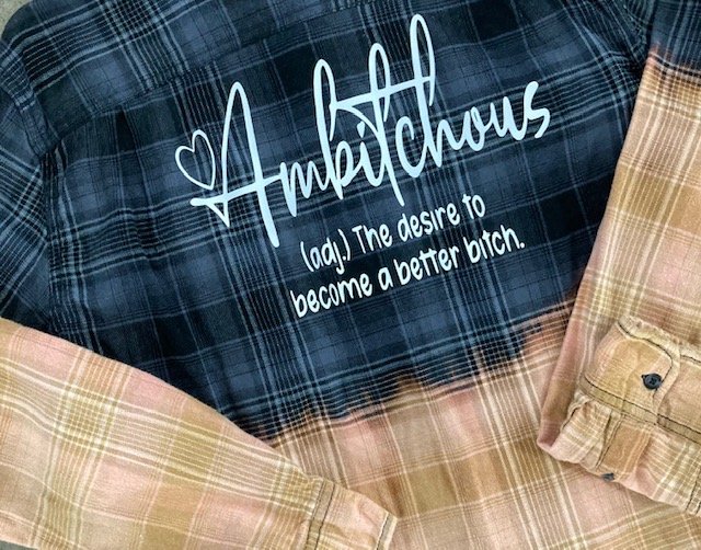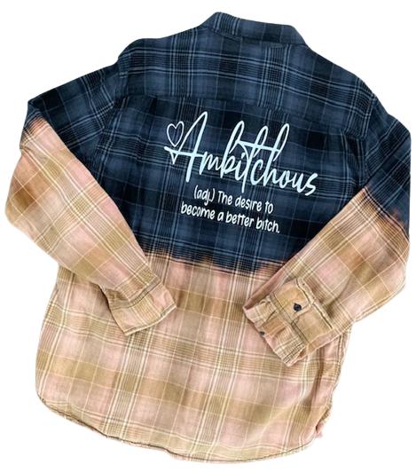 This listing is for a one-of-a-kind bleached "Ambitchous”, a perfect distressed flannel shirt for Her!