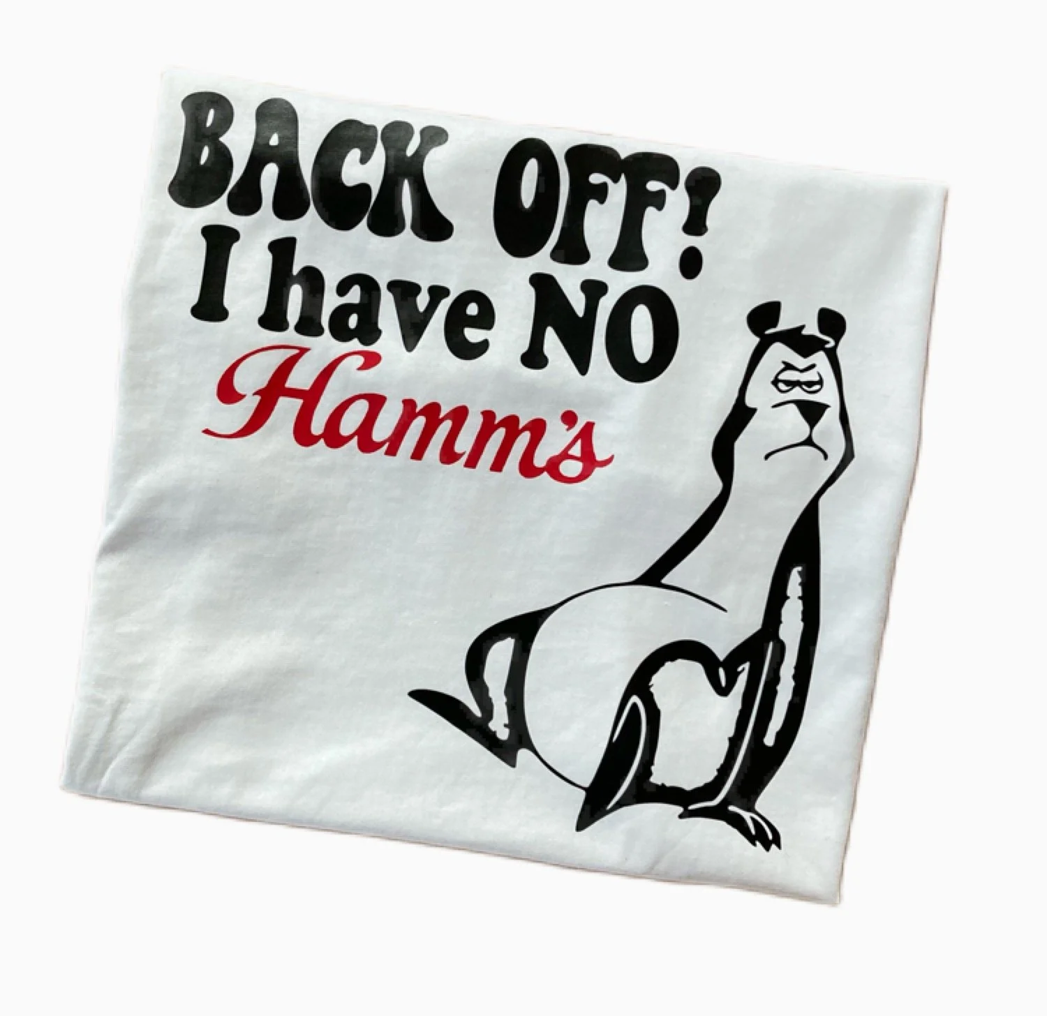 Welcome to the land of the of the sky blue waters! The Hamm’s Beer Bear, Sascha, the mascot for Hamm’s Beer; Born In The Land Of Sky Blue Water Theodore Hamm Company, St. Paul, Minnesota designed T-Shirt with thermal socks is perfect for the Hamm’s Beer Lover or the Hamm’s Beer Collector! Our “Back Off! I Have No Hamm’s” T-Shirt. Sascha was a cartoon mascot used in television production and print advertisements for Hamm’s beer. The animated character was the first of its kind in the beer industry which makes this t-shirt and thermal socks a great makes a perfect Hamm's Beer and Bear Collector Gift!