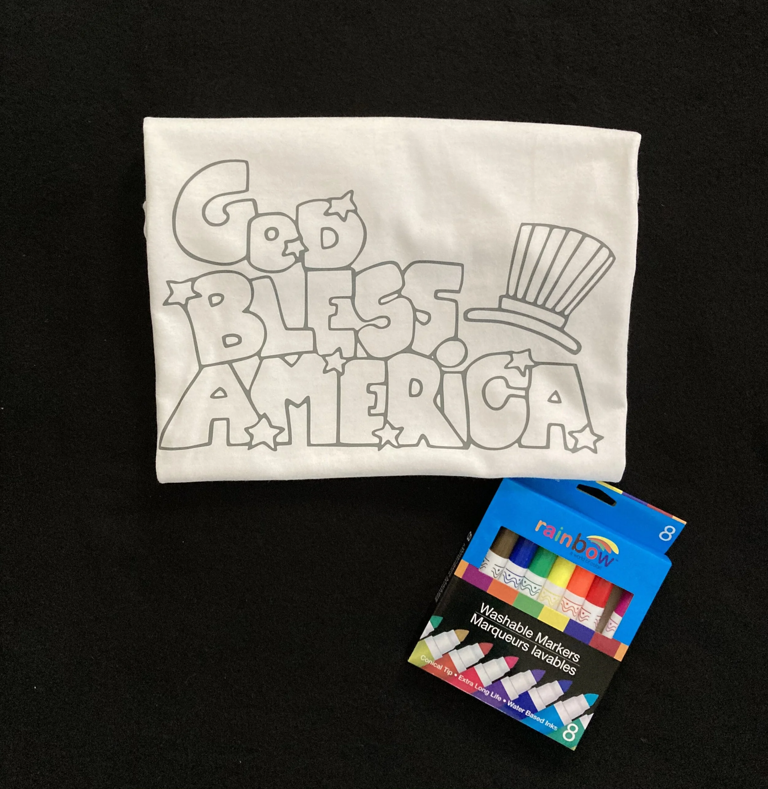 Our God Bless America is a perfect Color Me T-Shirt for the upcoming 4th of July! Nothing says America with your child’s coloring of the Red, White and Blue! Your child will be wearing their art work loudly and proudly with this Color Me T-Shirt!