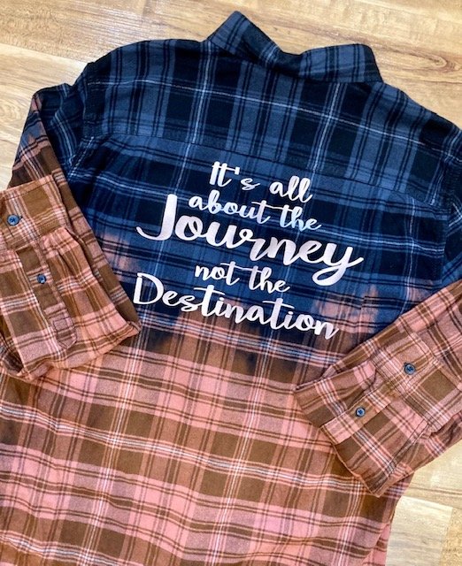 This listing is for a one-of-a-kind bleached "It’s All About The Journey Not The Destination" button down inspirational flannel shirt.