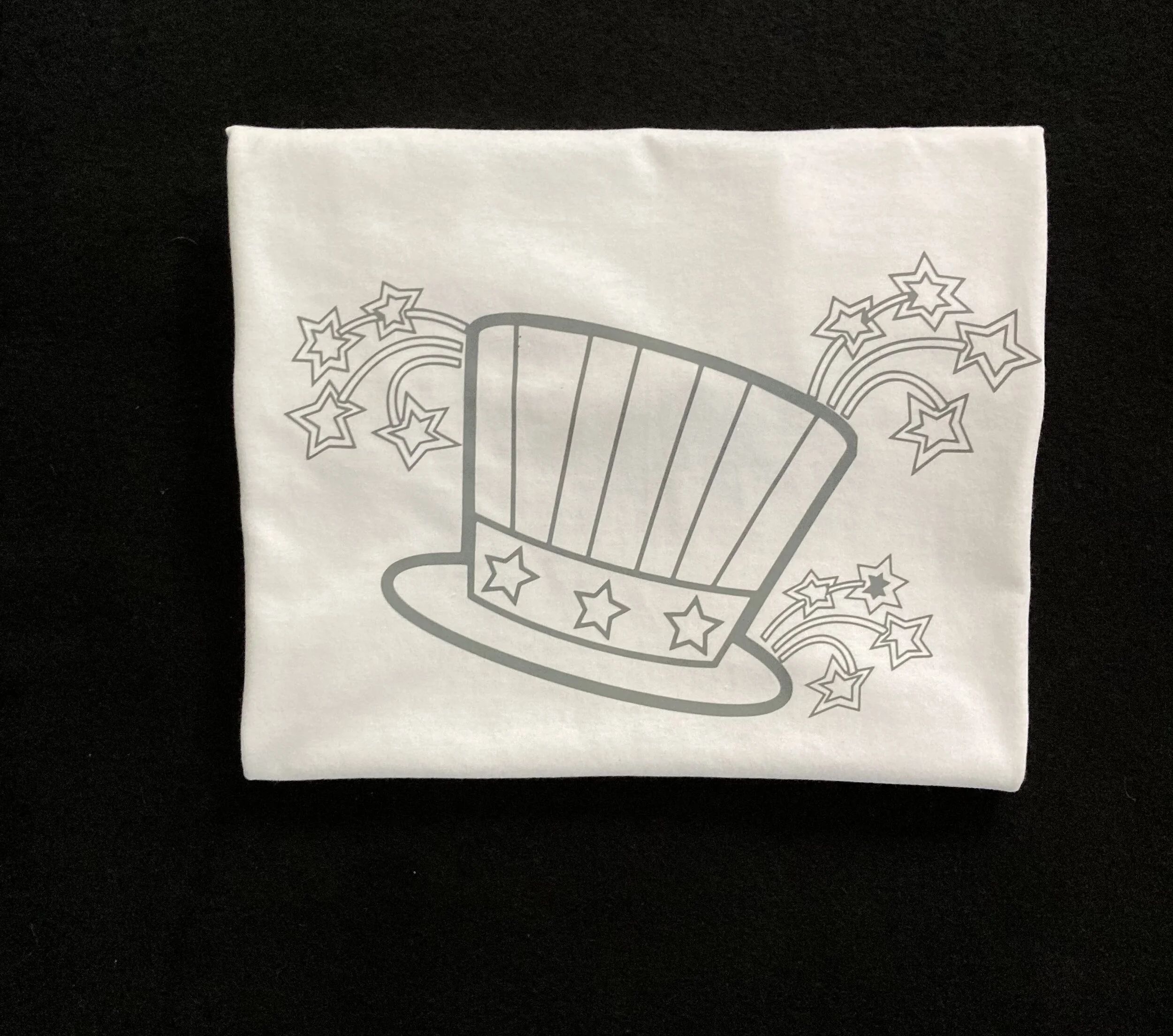 Our Patriotic Uncle Sam’s Hat with Fireworks is a perfect Color Me T-Shirt for the upcoming 4th of July! Nothing says America with your child’s coloring of the Red, White and Blue! Your child will be wearing their art work loudly and proudly with this Color Me T-Shirt!