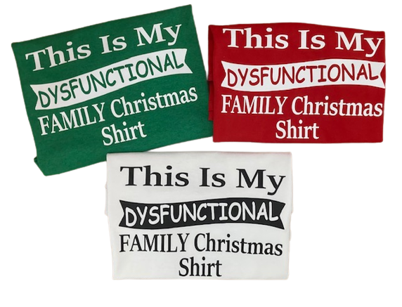 Shop this custom, funny, comfortable, causal “This Is My Dysfunctional Family Christmas Shirt" Christmas T-Shirt, available in white, green and red t-shirts. Perfect shirt to wear for your family Christmas Gathering! This t-shirt will become one of your favorites quickly!